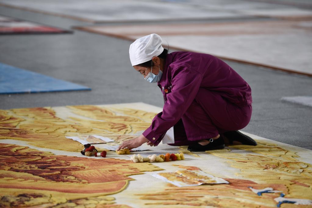 6月7日,在青海圣源地毯集團(tuán)有限公司的生產(chǎn)車間內(nèi),工人正在對(duì)藏毯進(jìn)行處理。新華社記者 張龍 攝