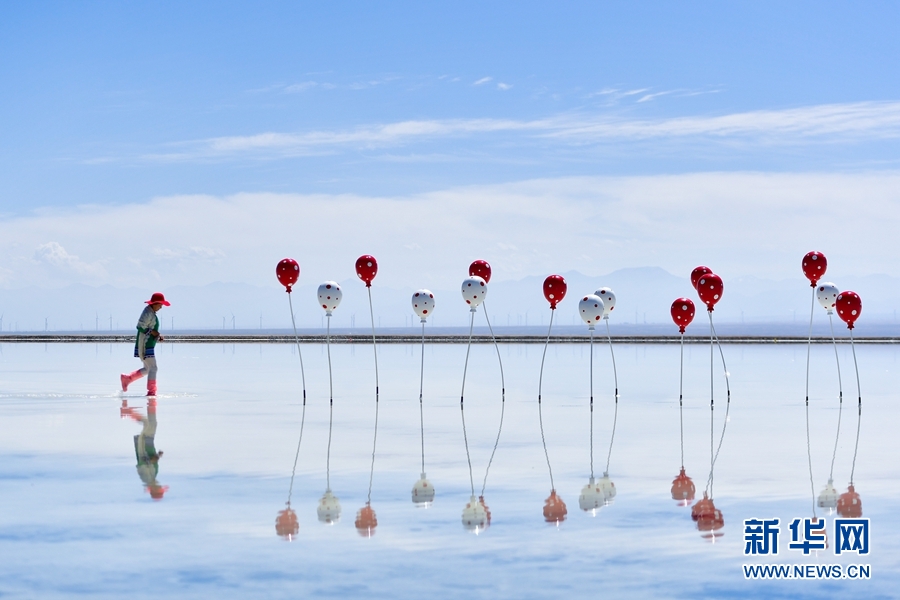 安靜的湖面上沒有一絲波瀾,遠處的雪山倒映在湖面上宛如一幅構(gòu)圖對稱的油畫。青藏高原的6月仍覺微寒,在茶卡鹽湖景區(qū),來自全國各地的游客在湖邊拍照“打卡”,好不熱鬧。