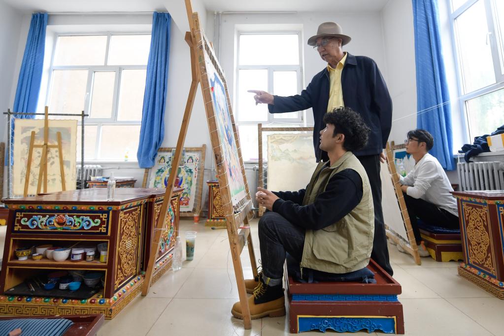 唐卡是藏族文化中獨具特色的繪畫藝術(shù)形式,具有鮮明的民族特點,被稱為藏族的“百科全書”,也是中華民族彌足珍貴的非物質(zhì)文化遺產(chǎn)。2001年,青海民族大學(xué)藝術(shù)學(xué)院創(chuàng)辦全國首個工藝美術(shù)(唐卡)專業(yè),將傳統(tǒng)民間藝術(shù)納入大學(xué)教學(xué)體系,實現(xiàn)從民間師徒傳承模式向?qū)W校教學(xué)模式的轉(zhuǎn)變,為傳統(tǒng)民族文化培養(yǎng)人才,更好地傳承非遺文化。