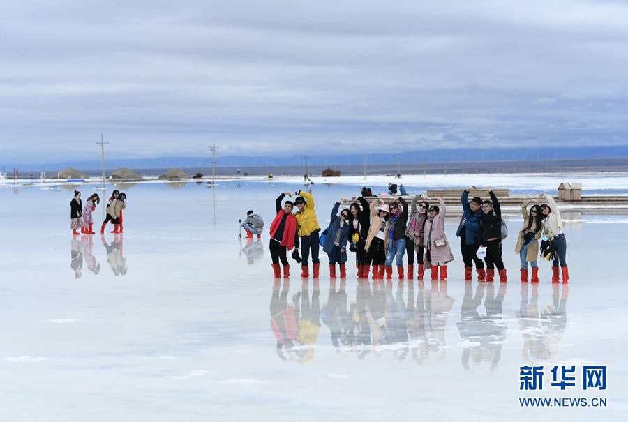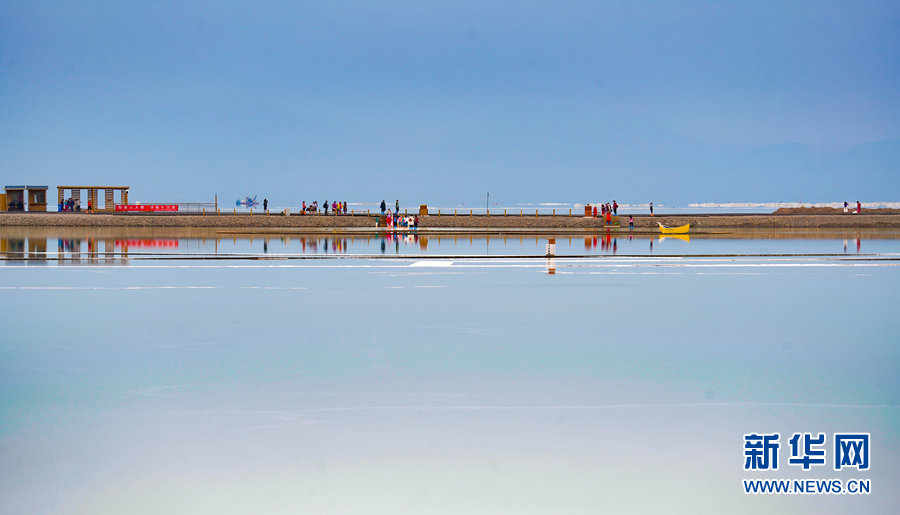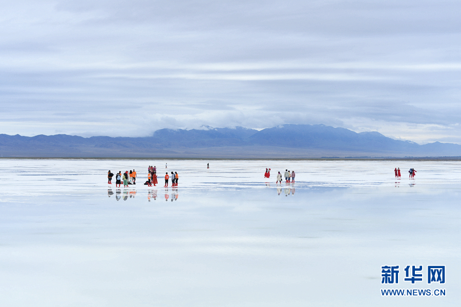 游客在茶卡鹽湖天空之鏡景區(qū)內(nèi)游覽。新華網(wǎng) 潘彬彬 攝