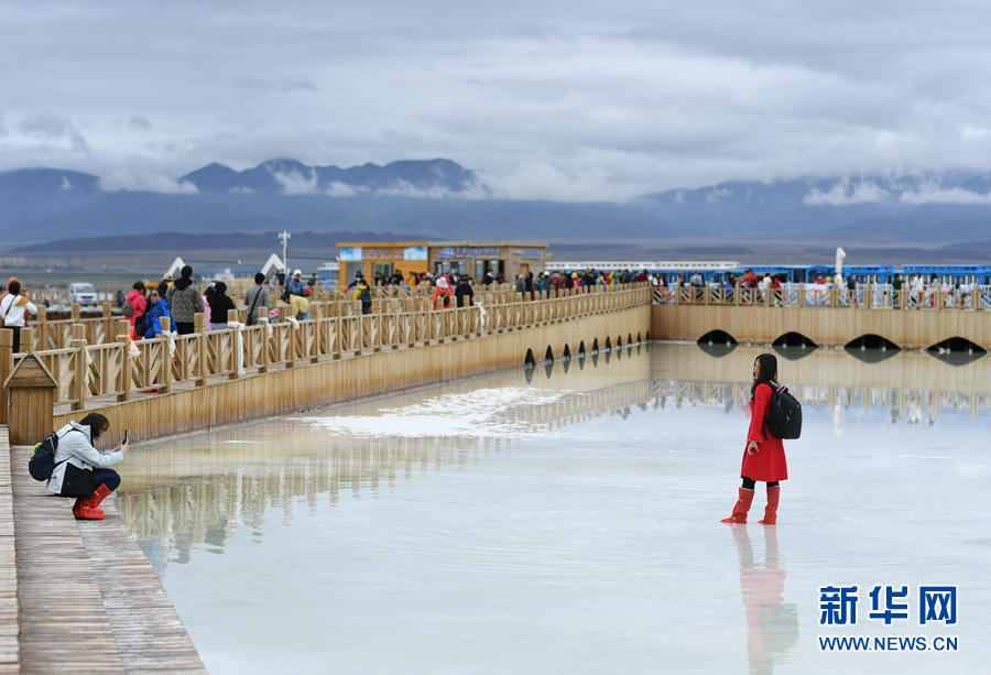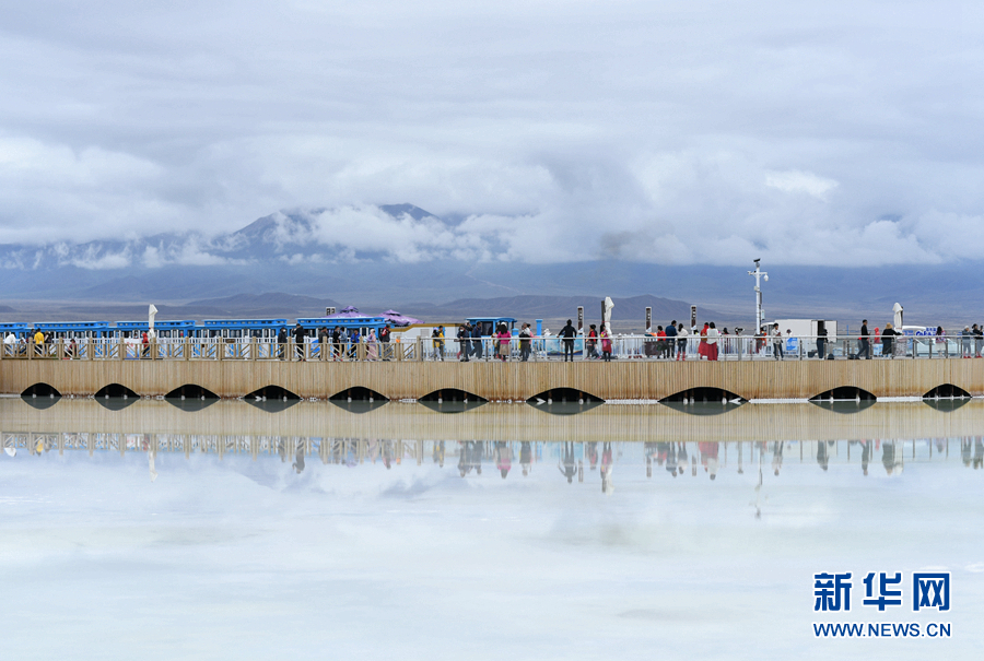 游客在茶卡天空壹號景區(qū)內(nèi)游覽。新華網(wǎng) 宋忠勇 攝