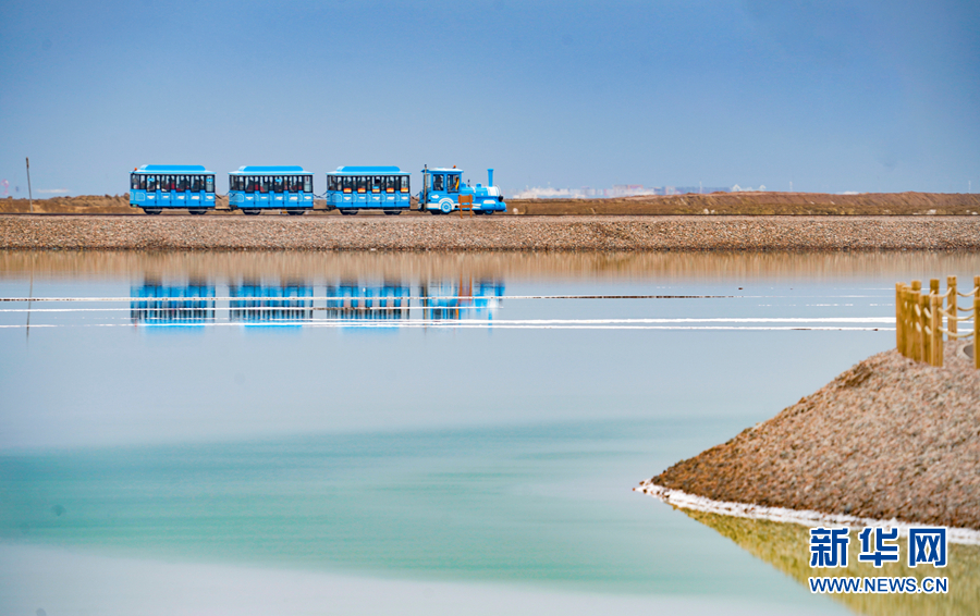 一列觀光火車從茶卡天空壹號景區(qū)內(nèi)經(jīng)過。新華網(wǎng) 宋忠勇 攝