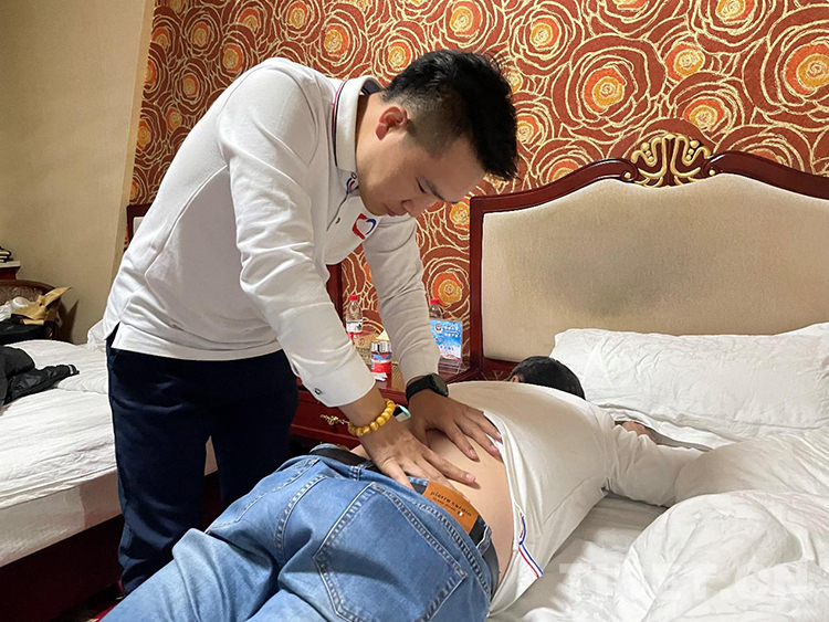 在寶貴的休息時間里給多少團(tuán)隊(duì)成員扎過針,常有才沒數(shù)過,“估計(jì)有二三十人,或者你去群里問問。”帥氣的他笑呵呵地說。