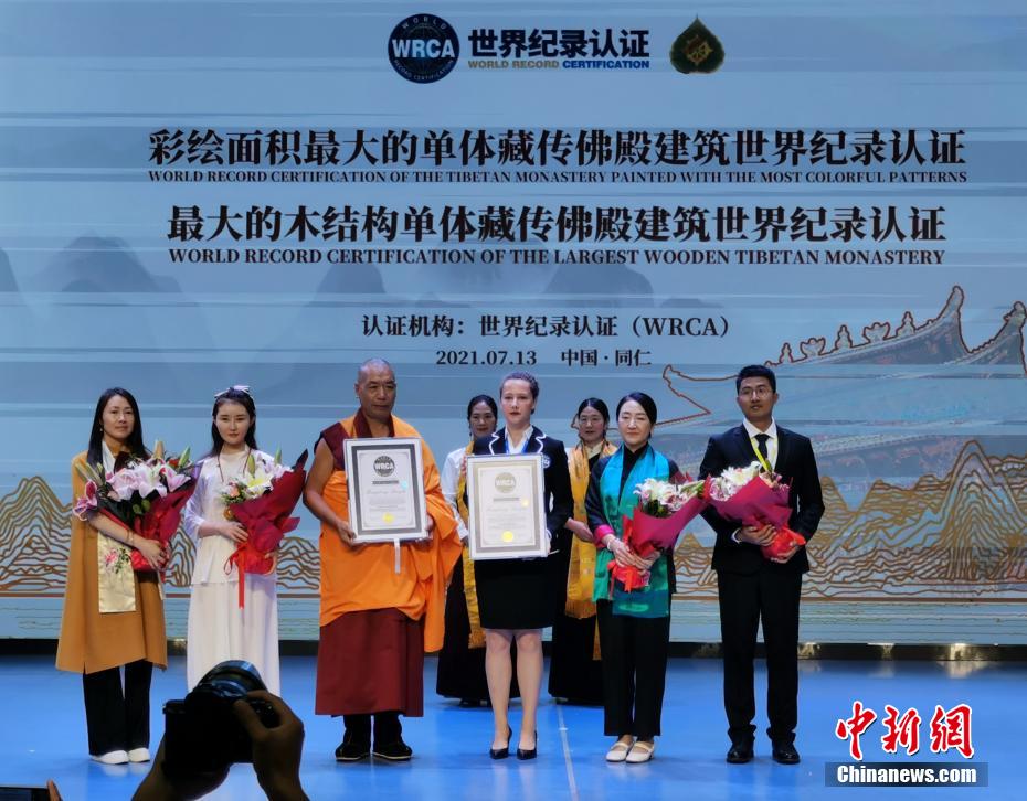 7月13日,青海省黃南藏族自治州同仁市麻巴寺新修建的扎西多卡瑪?shù)?3日正式落成,并被世界紀錄認證機構(gòu)(WRCA)認證為彩繪面積最大的單體藏傳佛殿建筑和最大的木結(jié)構(gòu)單體藏傳佛殿建筑。據(jù)悉,新修建的扎西多卡瑪?shù)睿ㄗ诳Π偷睿﹥?nèi)外均以礦石原料和植物原料手工彩繪,面積為5883.48平方米,該殿被確認為“世界彩繪面積最大的單體藏傳佛殿建筑”,該殿主體為木制結(jié)構(gòu)的重檐歇山頂式建筑,占地面積為540余平方米,長27米、寬21米、高16米,共三層,該殿被確認為“世界最大的木結(jié)構(gòu)單體藏傳佛殿建筑”。