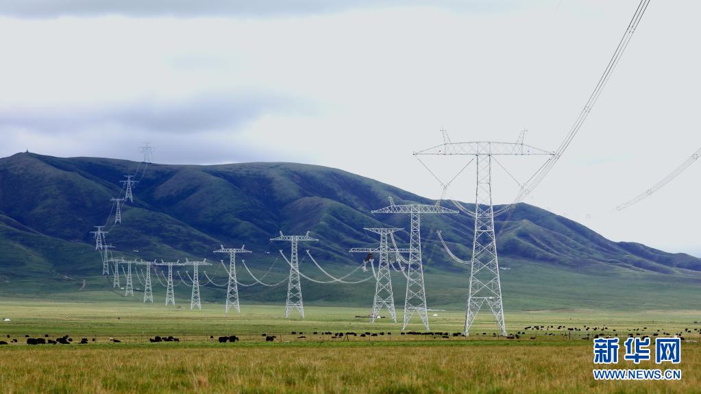 6月17日在青海省黃南藏族自治州河南蒙古族自治縣拍攝的青豫特高壓直流工程。新華社 謝莉蓉 攝
