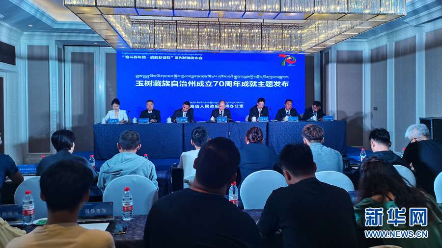 7月19日,“奮斗百年路 啟航新征程”系列新聞發(fā)布會——玉樹藏族自治州成立70周年成就主題發(fā)布現(xiàn)場。新華社記者 呂雪莉攝