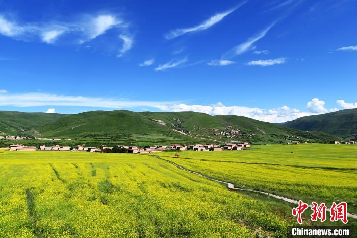四川阿壩:萬(wàn)畝高原油菜花引游人