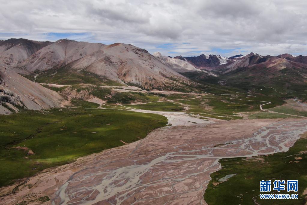 這是7月26日拍攝的長(zhǎng)江源地區(qū)的冬克瑪?shù)妆ǎo(wú)人機(jī)照片)。新華社記者 張龍 攝