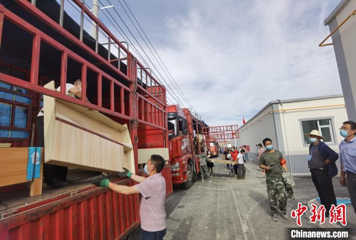 在夕陽的余暉漸漸離開院子時,45歲的劉張生一家五口人在工作人員和志愿者的幫助下,終于將大批家具和行李拆包后分門別類地歸置于屋內(nèi)。他們把看起來有些年頭的沙發(fā)、茶幾等老家具,在客廳陳設上特意布置成“老家”原來的樣子,以此淡化“思鄉(xiāng)的情緒”。