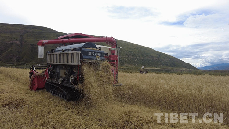中國(guó)西藏網(wǎng)訊 金燦燦的麥浪映襯著農(nóng)民的笑臉,沉甸甸的麥穗承載著豐收的喜悅。8月18日,在四川省甘孜藏族自治州爐霍縣斯木鎮(zhèn)章達(dá)村的青稞地里,麥浪翻滾,大型聯(lián)合收割機(jī)來(lái)回穿梭忙著收割,標(biāo)志著爐霍縣青稞機(jī)收作業(yè)正式拉開(kāi)序幕。