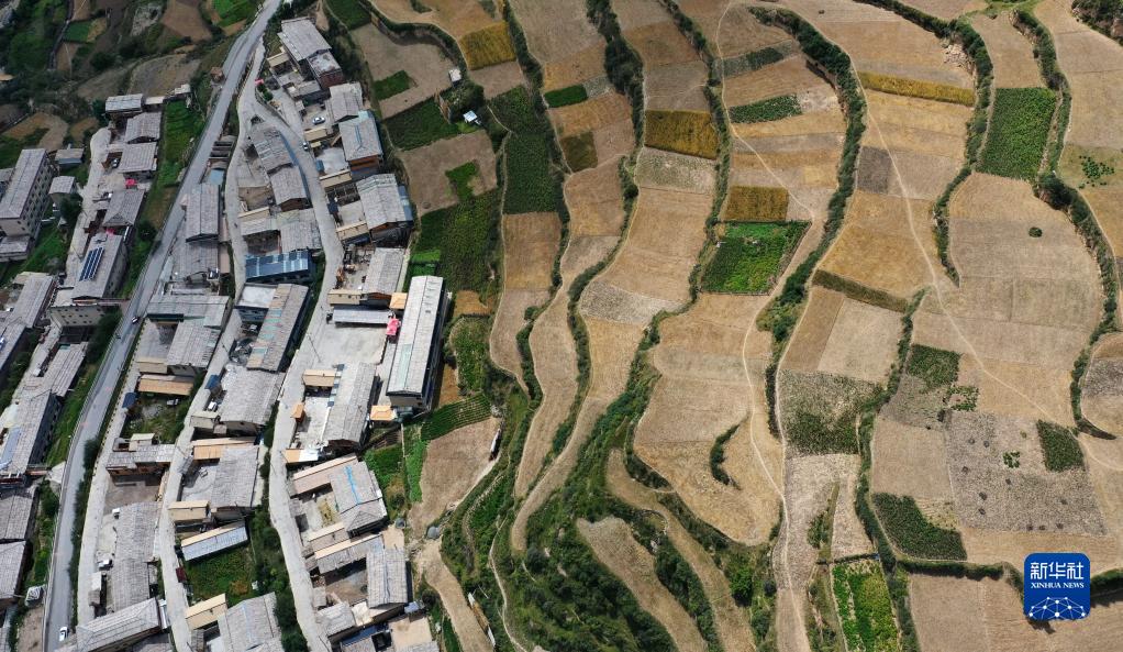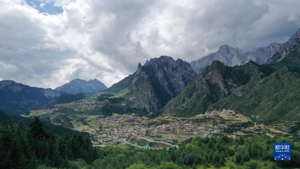 這是8月28日拍攝的扎尕那美麗風(fēng)光(無人機照片)。新華社記者 陳斌 攝