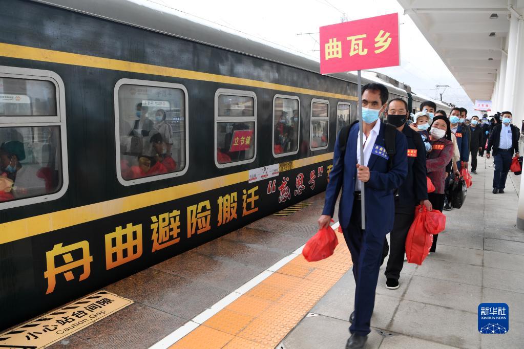當日,甘肅省甘南藏族自治州舟曲縣9個鄉(xiāng)鎮(zhèn)的200戶500余名居民乘坐中國鐵路蘭州局集團有限公司開行的舟曲避險搬遷“感恩號”專列前往蘭州新區(qū)安家。據介紹,今年以來,甘肅省啟動舟曲縣地質災害避險搬遷工作,計劃年底前搬遷770戶2960人到蘭州新區(qū)安家,此次搬遷的200戶居民是首次借助鐵路專列運輸形式實施搬遷。