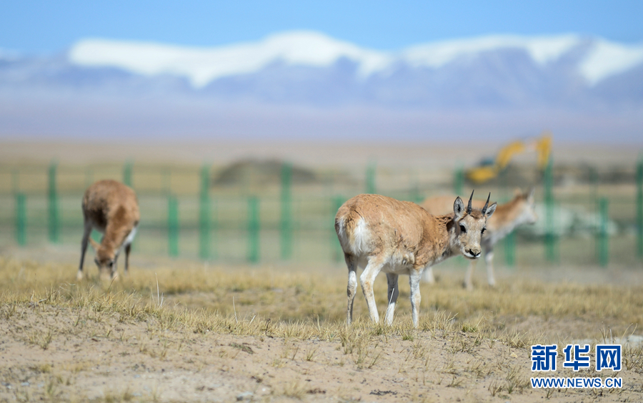 在可可西里國(guó)家級(jí)自然保護(hù)區(qū)索南達(dá)杰保護(hù)站,幾只藏羚羊在野生動(dòng)物救助中心活動(dòng)(9月28日攝)。新華社記者 薛玉斌 攝