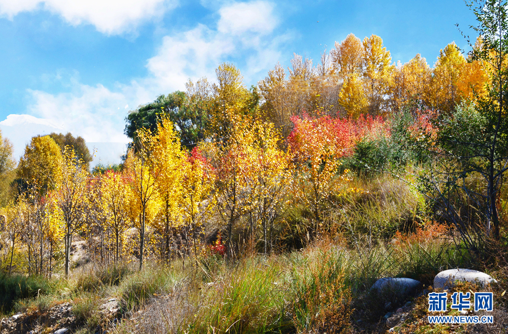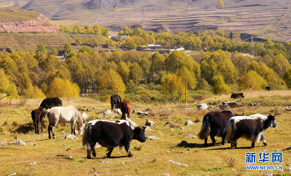 秋日的貴德,一眼望去層林盡染。新華網(wǎng) 李崇軒 攝