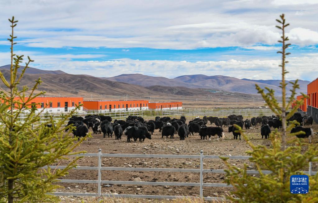 10月20日,在四川省甘孜藏族自治州理塘縣牦牛產(chǎn)業(yè)園區(qū),牦牛群在戶外活動場活動。新華社記者 王曦 攝