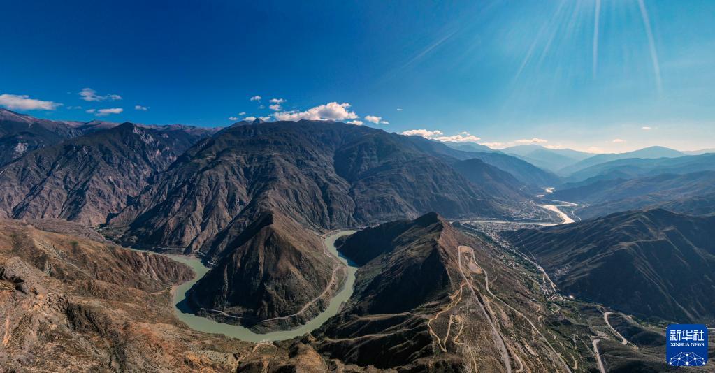 10月27日拍攝的金沙江大灣(無人機(jī)全景照片)。新華社記者 江文耀 攝