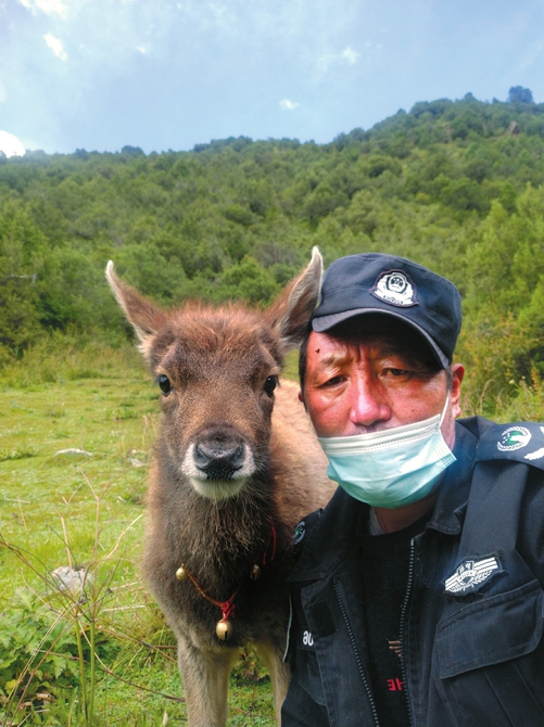 更思村與三江源毗鄰,海拔超過(guò)4000米,這里生活著雪豹、白唇鹿、棕熊、巖羊等珍稀動(dòng)物。其中有一只國(guó)家一級(jí)保護(hù)動(dòng)物白唇鹿幼崽,目前也在護(hù)林員的照料下慢慢長(zhǎng)大。