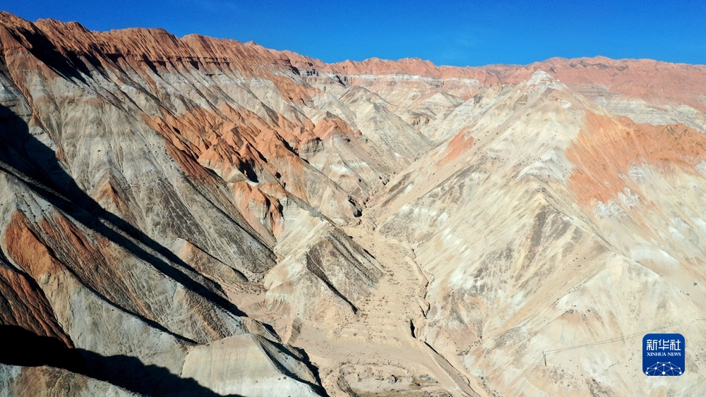冬日,在青海省海南藏族自治州貴德縣,多彩的丹霞地貌在陽光照耀下形成一幅美麗畫卷。