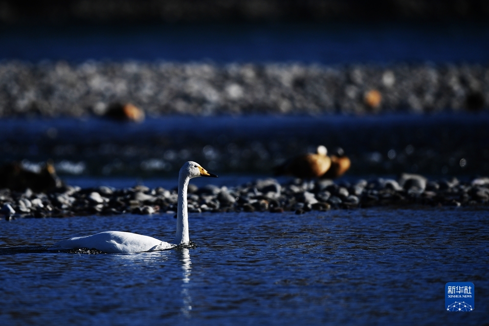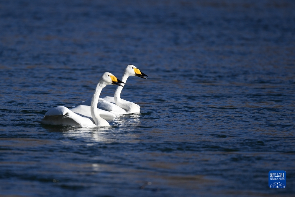 近日,前來越冬的近百只天鵝在青海省海南藏族自治州貴德縣境內的黃河濕地覓食休憩,為冬日黃河帶來勃勃生機。近年來,青海省加大力度保護治理境內黃河流域,改善當?shù)厣鷳B(tài)環(huán)境,為越冬候鳥提供良好棲息地。