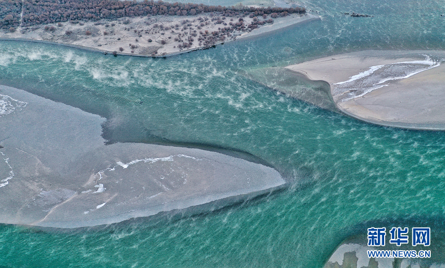 1月2日無(wú)人機(jī)拍攝的貴德縣千姿湖濕地公園。新華網(wǎng) 宋忠勇 攝