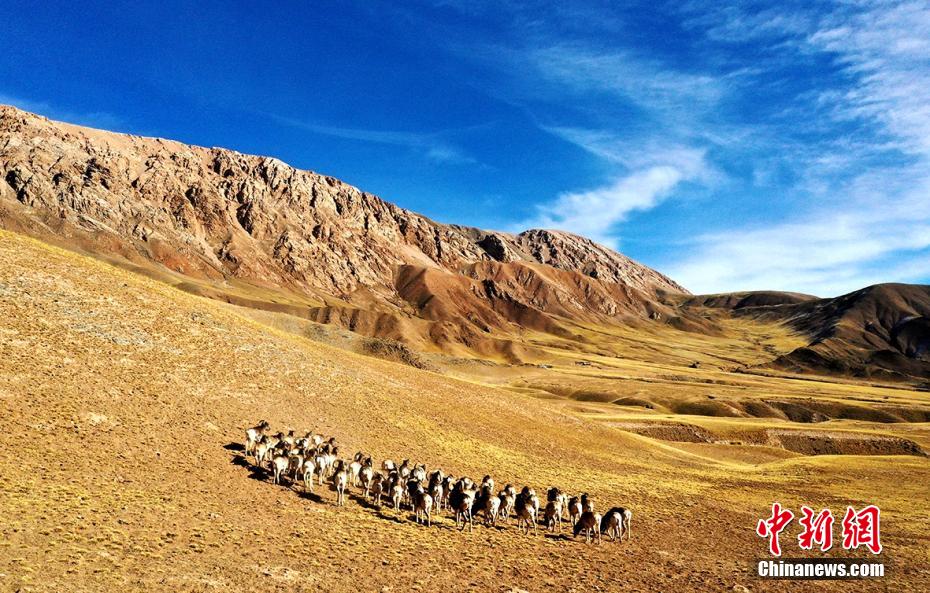圖為航拍成群盤羊奔跑。贊慶 攝