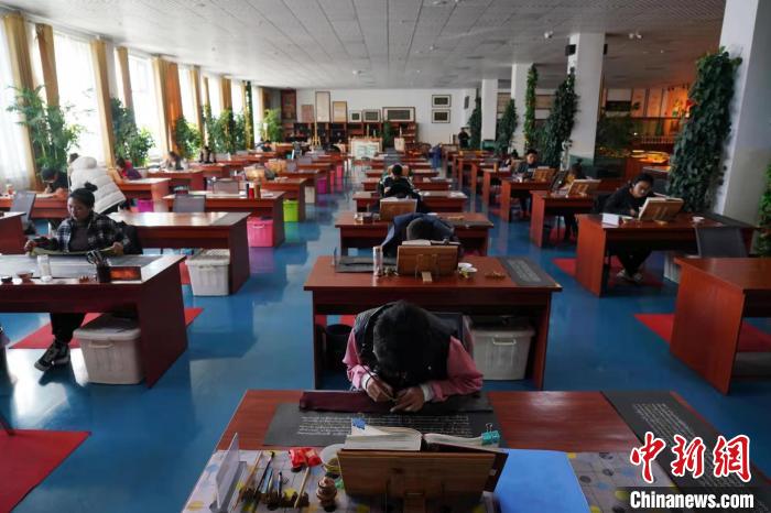 “基地的建立是在傳承和保護藏民族民間優(yōu)秀傳統(tǒng)文化之外,讓大家掌握一技之長。除當?shù)啬撩駚韺W習,還有其他州縣學員專門到這學習?!狈俏镔|(zhì)文化遺產(chǎn)綜合傳習中心相關(guān)負責人才讓多杰說,學員們已完成各種大小金書有3000余部,其中一部分金書在寺院和被收藏家收藏。目前與西藏、云南、四川等地建立了業(yè)務(wù)關(guān)系。