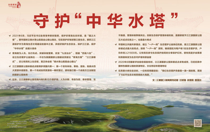 2021年6月,習(xí)近平總書記赴青??疾鞎r(shí)強(qiáng)調(diào),保護(hù)好青海生態(tài)環(huán)境,是“國之大者”。要牢固樹立綠水青山就是金山銀山理念,切實(shí)保護(hù)好地球第三極生態(tài)。要把三江源保護(hù)作為青海生態(tài)文明建設(shè)的重中之重,承擔(dān)好維護(hù)生態(tài)安全、保護(hù)三江源、保護(hù)“中華水塔”的重大使命。要繼續(xù)推進(jìn)國家公園建設(shè),理順管理體制,創(chuàng)新運(yùn)行機(jī)制,加強(qiáng)監(jiān)督管理,強(qiáng)化政策支持,探索更多可復(fù)制可推廣經(jīng)驗(yàn)。