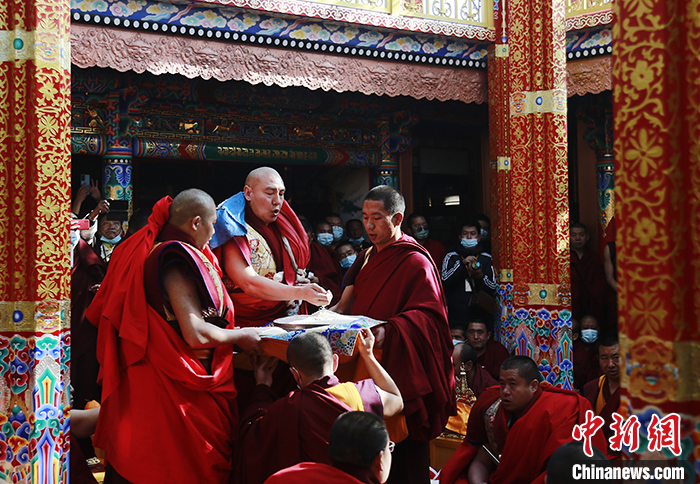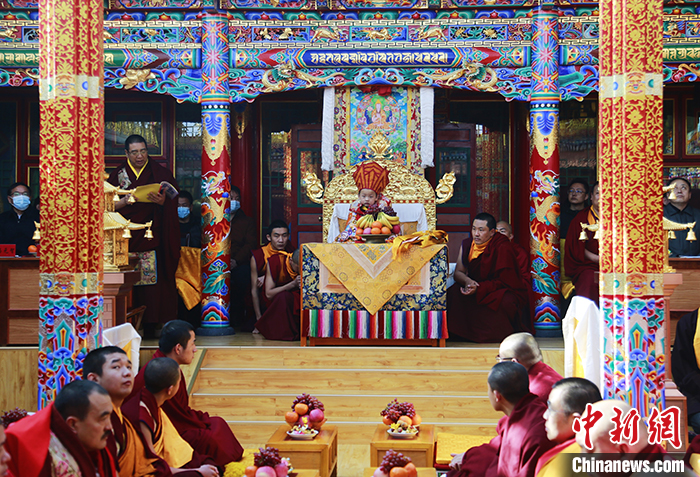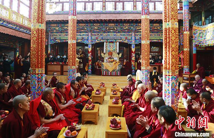 2月25日,農歷正月二十五,青海省西寧市湟中區(qū)塔爾寺舉行第九世格嘉·久美慈成南杰活佛坐床繼位典禮。中新社記者 馬銘言 攝