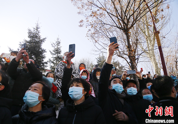 圖為信眾在塔爾寺內迎接第九世格嘉·久美慈成南杰活佛,并用手機記錄。中新社記者 馬銘言 攝