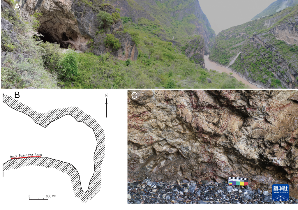 年代測(cè)定表明,位于云南省麗江市金沙江虎跳峽的萬(wàn)人洞巖畫(huà)可追溯至晚更新世末至全新世早期,是目前有年代數(shù)據(jù)記錄的東亞大陸最古老的彩繪巖畫(huà),由該地區(qū)舊石器時(shí)代的狩獵—采集人群創(chuàng)作。相關(guān)研究成果于近期發(fā)表在國(guó)際考古學(xué)期刊《考古科學(xué)雜志》。