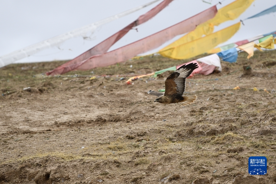 2021年5月25日,一只鷹在三江源國家公園黃河源園區(qū)內(nèi)飛翔。新華社記者 張龍 攝