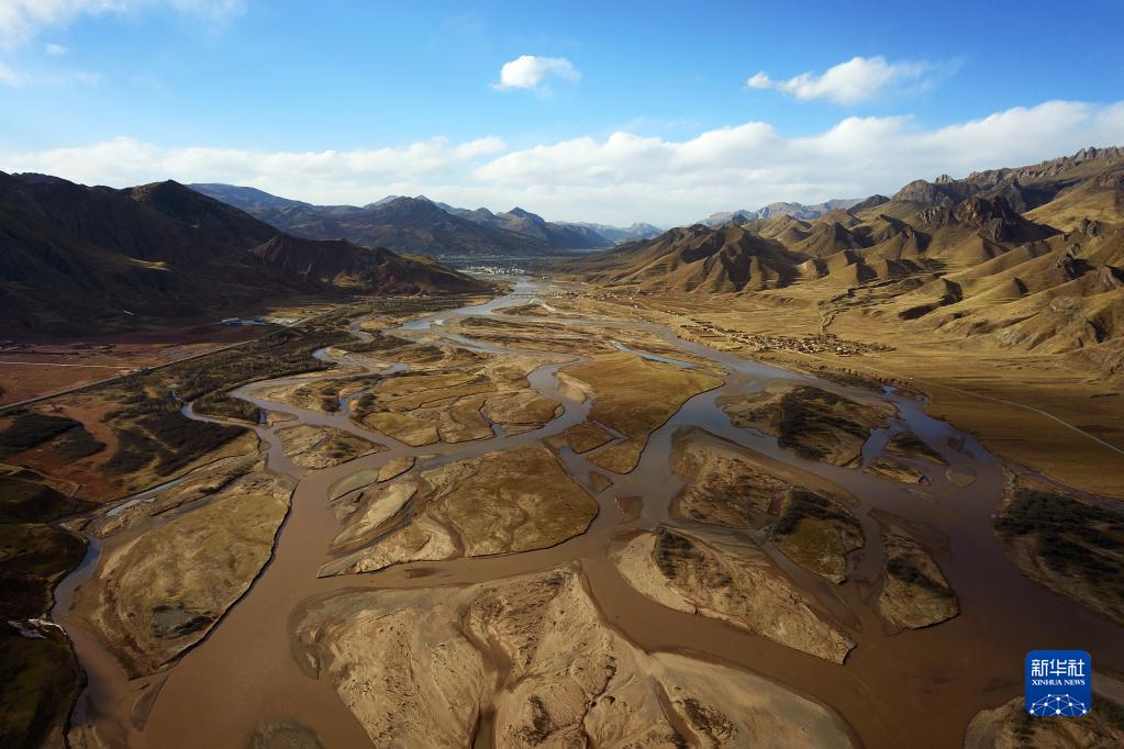 這是2022年3月20日在青海省玉樹藏族自治州囊謙縣境內(nèi)拍攝的瀾滄江上源扎曲河(無人機(jī)照片)。新華社記者 范培珅 攝