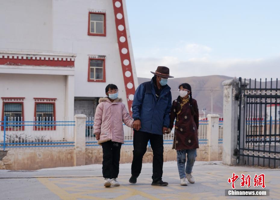 圖為放學(xué)后,老人接孫女們回到福利院。 馬銘言 攝