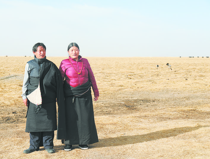 年復(fù)一年,如科每天帶上工作證、望遠(yuǎn)鏡、茶水和干饃饃,從他居住的觀測站出發(fā),騎著摩托車巡護(hù)濕地;他的妻子沿著湖泊撿拾垃圾,守護(hù)著黑頸鶴的棲居環(huán)境,守護(hù)著野生動物的美好家園。