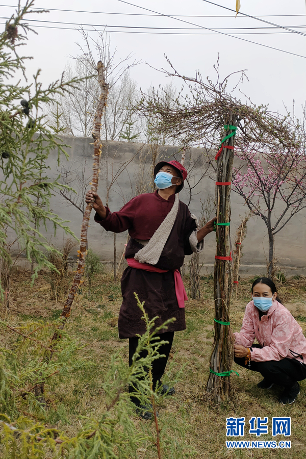 “夏天的時(shí)候,院子里鳥語花香,在亭子里坐一會(huì)兒,心里別提有多美了!”村民南拉加的自家小院里種滿了樹和花,有圓柏、杏樹、高山柳、連翹、玫瑰和牡丹,大門兩旁的榆葉梅競(jìng)相開放。