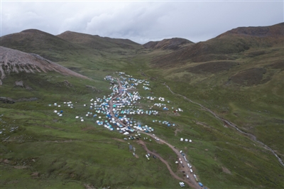 對(duì)理塘人來(lái)說(shuō),蟲草一直是大部分農(nóng)牧民的主要收入。雖然今年采集蟲草的人不及往年,但阿加溝依然涌進(jìn)了上萬(wàn)人。6月8日下午,部分采集者已經(jīng)下山,營(yíng)地里尚有數(shù)百個(gè)帳篷錯(cuò)落有致地搭建在道路兩邊的草地上,人們都去了山上,整個(gè)山谷一片沉靜。只有傍晚六七點(diǎn)的時(shí)候,人們才像雪水一樣從山上匯聚下來(lái),這里才變得熱氣騰騰。