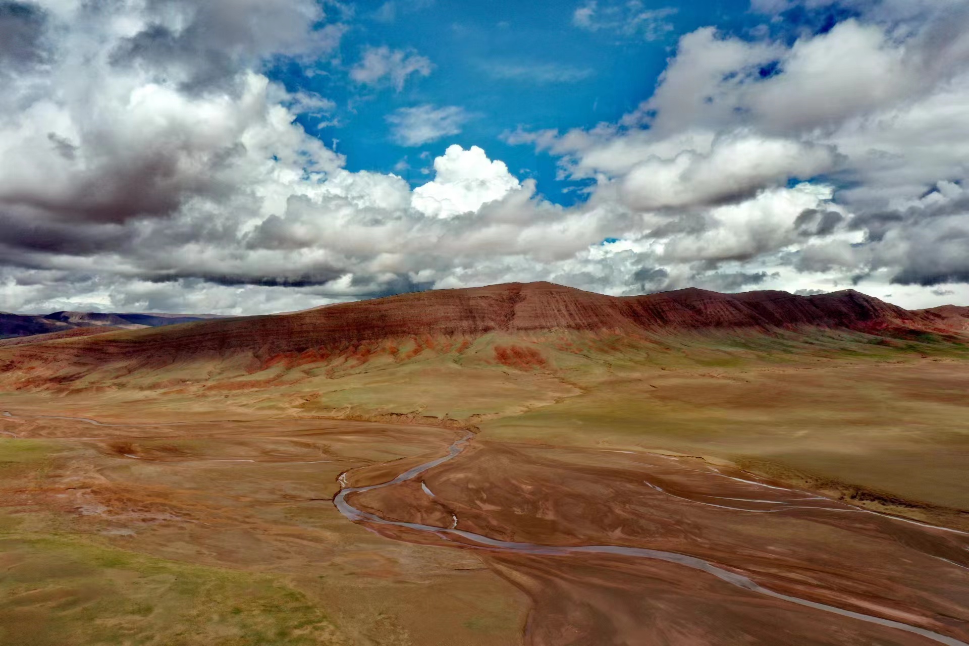 近日,中國(guó)地質(zhì)大學(xué)(武漢)長(zhǎng)江科考先遣隊(duì)員張永一行進(jìn)行綜合科學(xué)考察時(shí),在青藏公路日阿尺曲一帶發(fā)現(xiàn)一條紅色山脈,是青藏高原109國(guó)道沿線一處壯觀的地質(zhì)遺跡。該山脈由晚白堊紀(jì)鈣質(zhì)膠結(jié)的粉、細(xì)砂巖與古近紀(jì)紫紅色、磚紅色復(fù)成份礫巖所組成,呈近東西走向,兩坡不對(duì)稱,南陡北緩,地層剖面出露清楚。