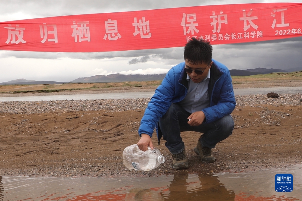 23日,在海拔超過4800米的長(zhǎng)江南源當(dāng)曲河畔,水利部長(zhǎng)江水利委員會(huì)長(zhǎng)江科學(xué)院首次開展長(zhǎng)江源特有魚類增殖放流活動(dòng)。