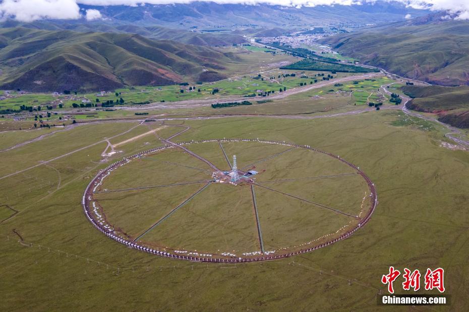 6月29日,四川稻城,航拍空間環(huán)境地基綜合監(jiān)測網(wǎng)(子午工程二期)全景,中間為定標塔。四川省甘孜州稻城縣境內(nèi),國家重大科技基礎(chǔ)設(shè)施空間環(huán)境地基綜合監(jiān)測網(wǎng)(子午工程二期),正在進行緊張的設(shè)備安裝,預(yù)計2022年底完成天線安裝調(diào)試工作。 中新社記者 劉忠俊 攝