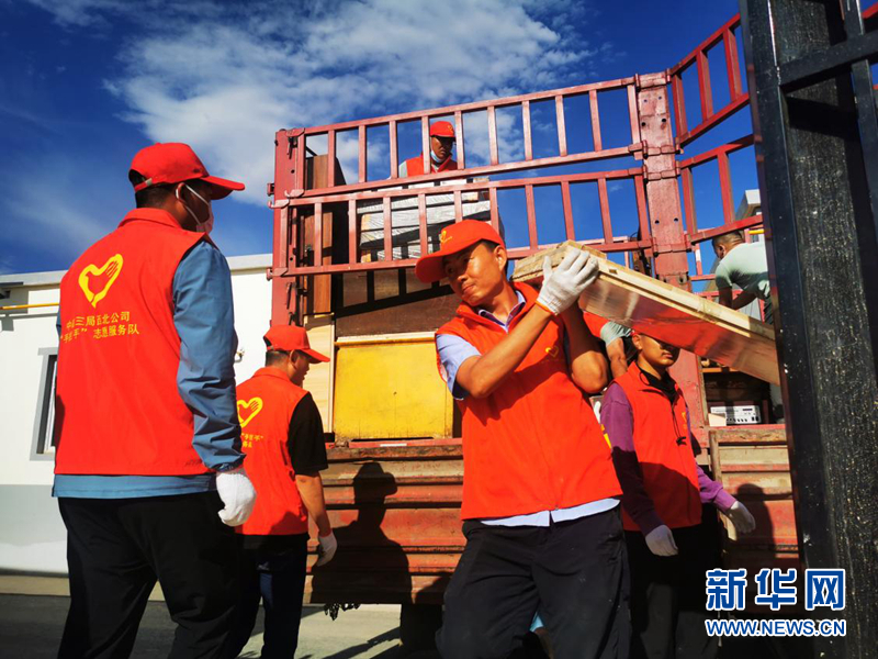 志愿服務隊為搬遷群眾搬送物資。(圖片來源:中建三局西北公司)