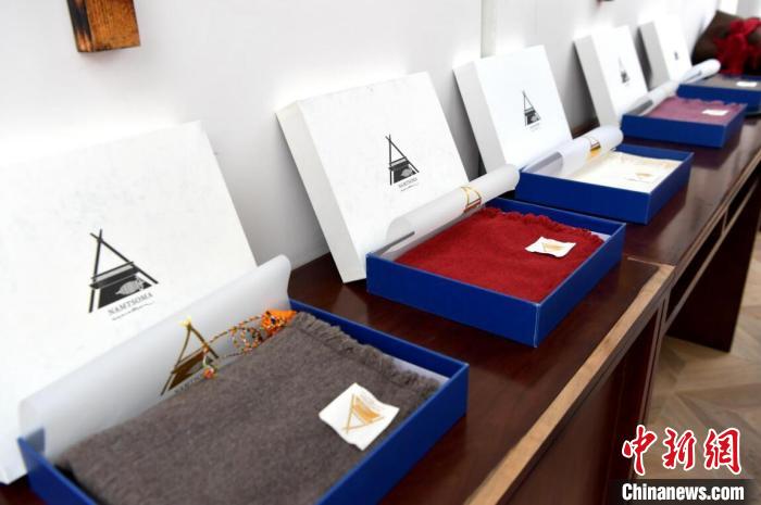 山鷹和團隊編制的精美圍脖和披肩。伍排勇 攝