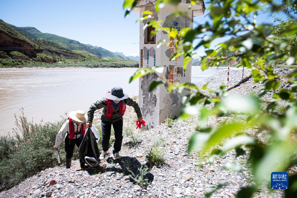 7月24日,長江科學院科考隊員在瀾滄江源區(qū)的雜多進行科考工作。新華社記者 肖藝九 攝