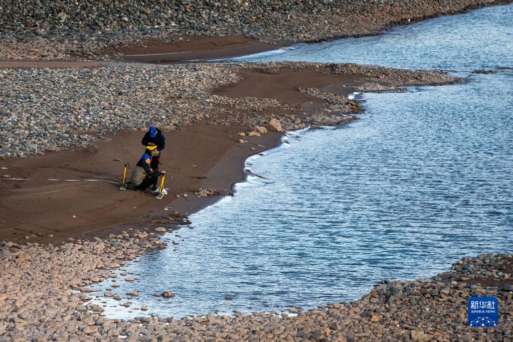 7月24日,長江科學院科考隊員李魯?shù)ぃㄓ遥┡c劉晗在瀾滄江源區(qū)的扎曲進行科考工作?!⌒氯A社記者 肖藝九 攝