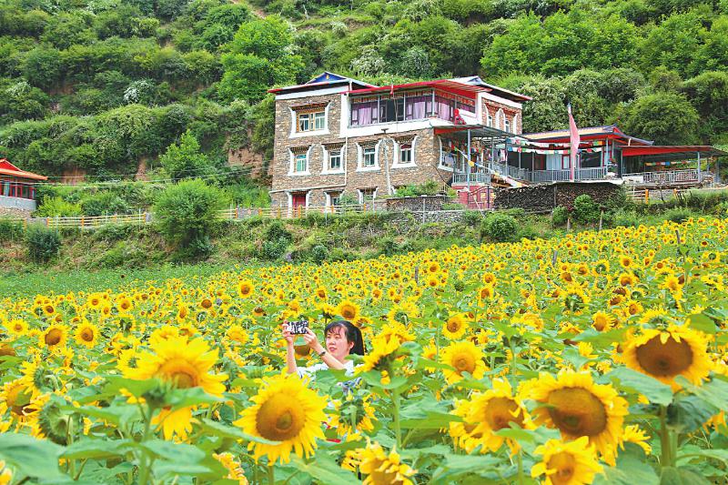 “現(xiàn)在是向日葵的盛花期,今天又是周末,來的游客比較多?!甭逋妩h支部書記澤郎東周說,因為可賞花、可納涼,7月前來洛威村休閑娛樂的游客已經(jīng)超2萬人次,村內(nèi)的“云壑樂園”農(nóng)家樂開業(yè)10來天便收入約20萬元。