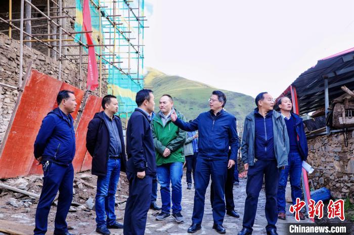圖為馮志勇(中)在建設(shè)項目工地調(diào)研。(資料圖) 上海市援青干部聯(lián)絡(luò)組 供圖
