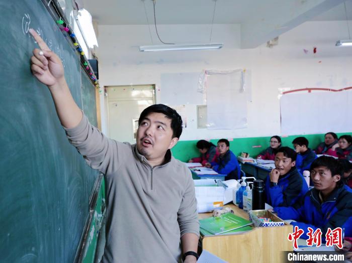 圖為丁志偉正在給學(xué)生講課。上海市援青干部聯(lián)絡(luò)組供圖