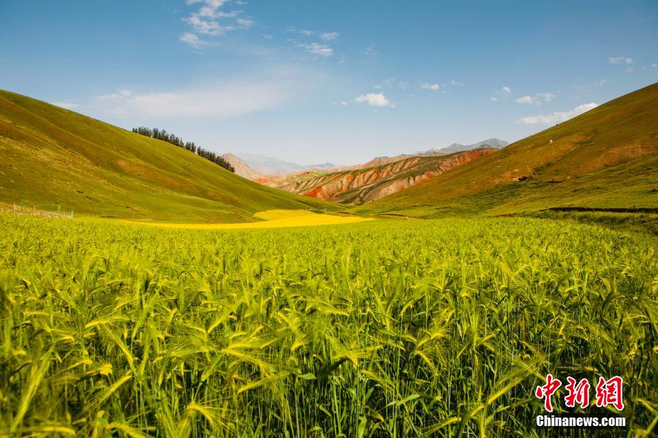 盛夏時(shí)節(jié),走進(jìn)青海海北藏族自治州祁連縣,親臨卓爾山讓人感覺到這里環(huán)境幽靜,空氣清新,風(fēng)景秀麗,數(shù)十條褶皺山脈縱橫捭闔,紅色的砂巖礫石放射出丹霞地貌特有的光采。平緩的坡地上,油菜花、青稞,牧草、鮮花、原始森林相互間雜,田野、村莊與大自然融為一體,在大地上描繪出一幅氣勢(shì)恢弘色彩斑斕的畫卷。 趙海梅 攝