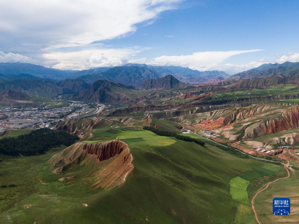 ??進入8月,位于青海省海北藏族自治州的祁連縣氣候清爽宜人,一望無際的草原、繚繞的白云,呈現(xiàn)出大西北獨具特色的美景。新華社發(fā) 李雪 張龍 編制