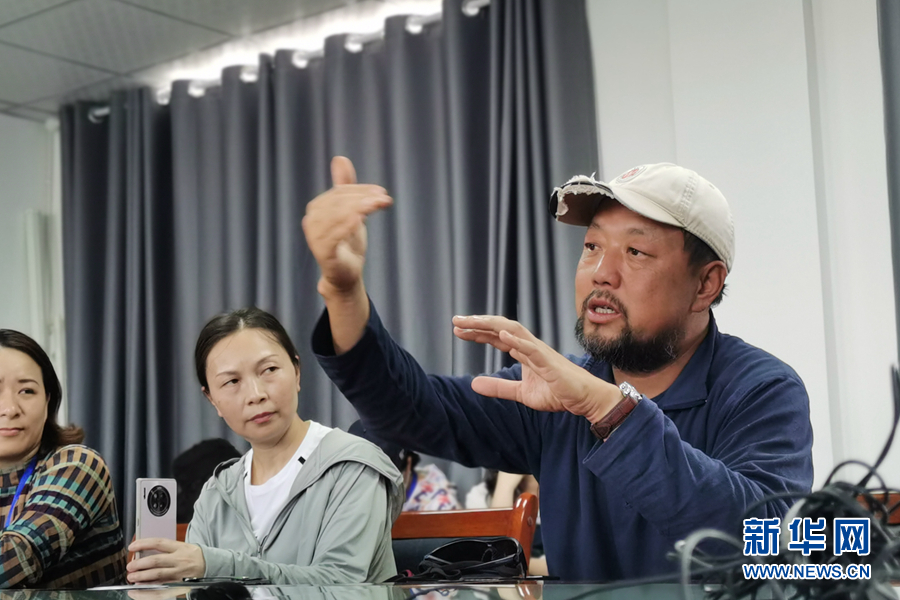 王大軍(右一)正在講述開展雪豹衛(wèi)星追蹤工作中的經(jīng)歷。新華網(wǎng)發(fā)