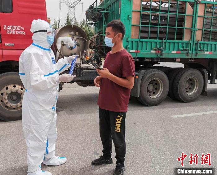 圖為吳遠(yuǎn)孝在高速卡口對進(jìn)入德令哈市區(qū)的車貼封條。 吳遠(yuǎn)孝 供圖